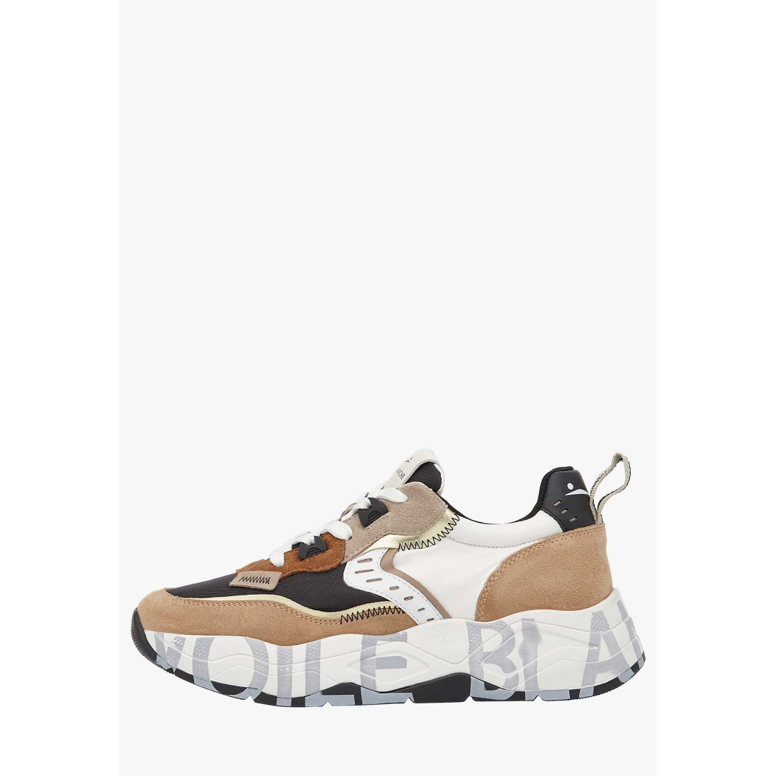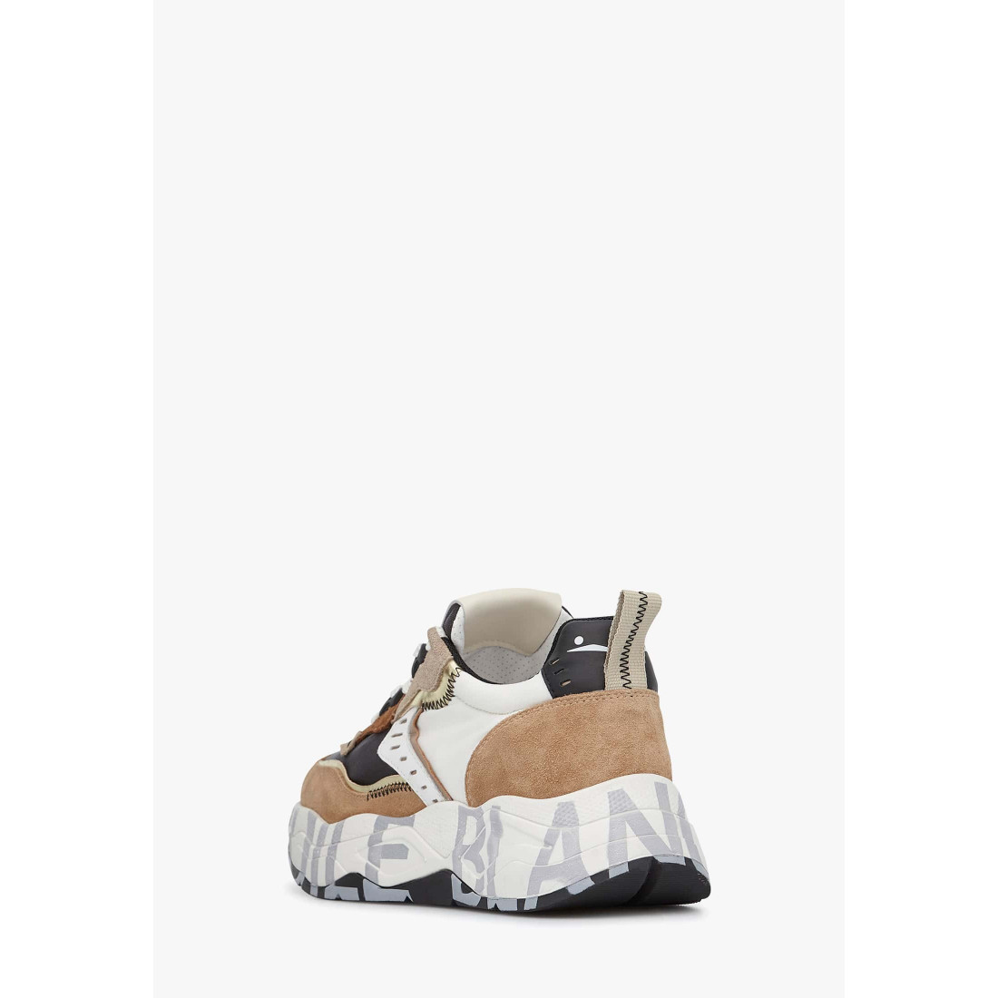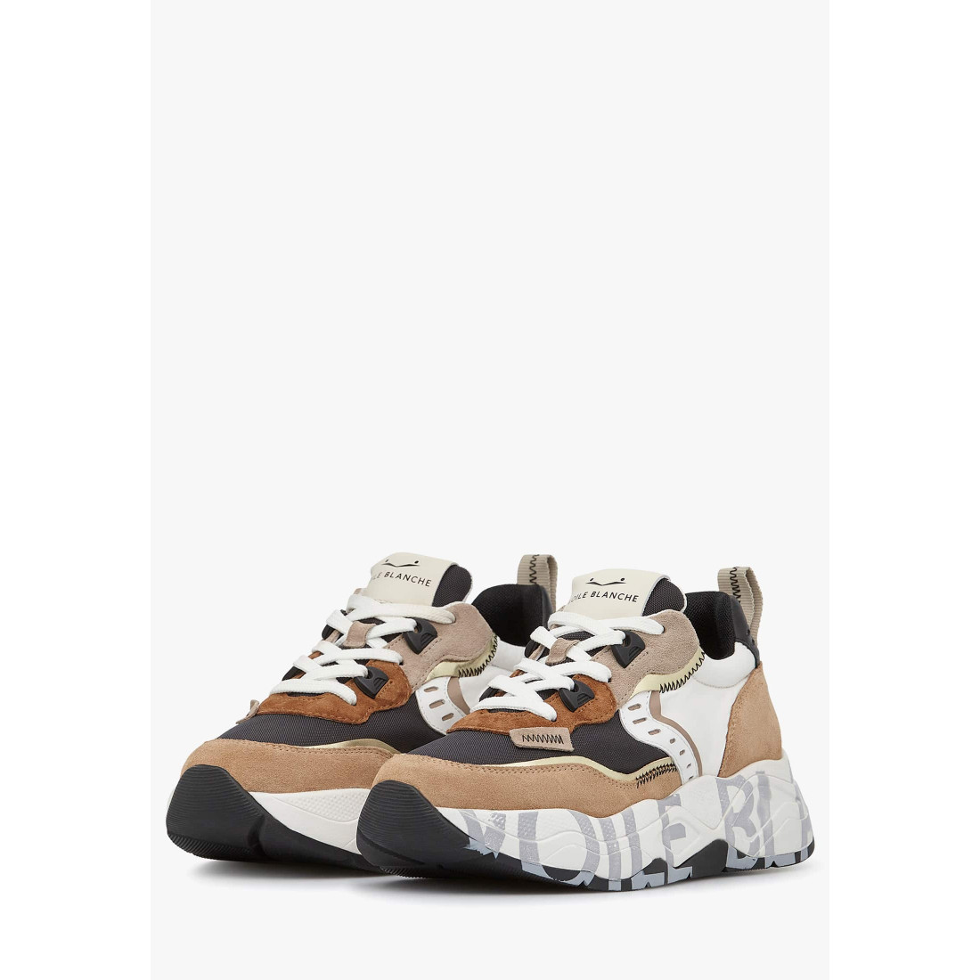 Sneakers in suede e tessuto beige-bianco-marrone.