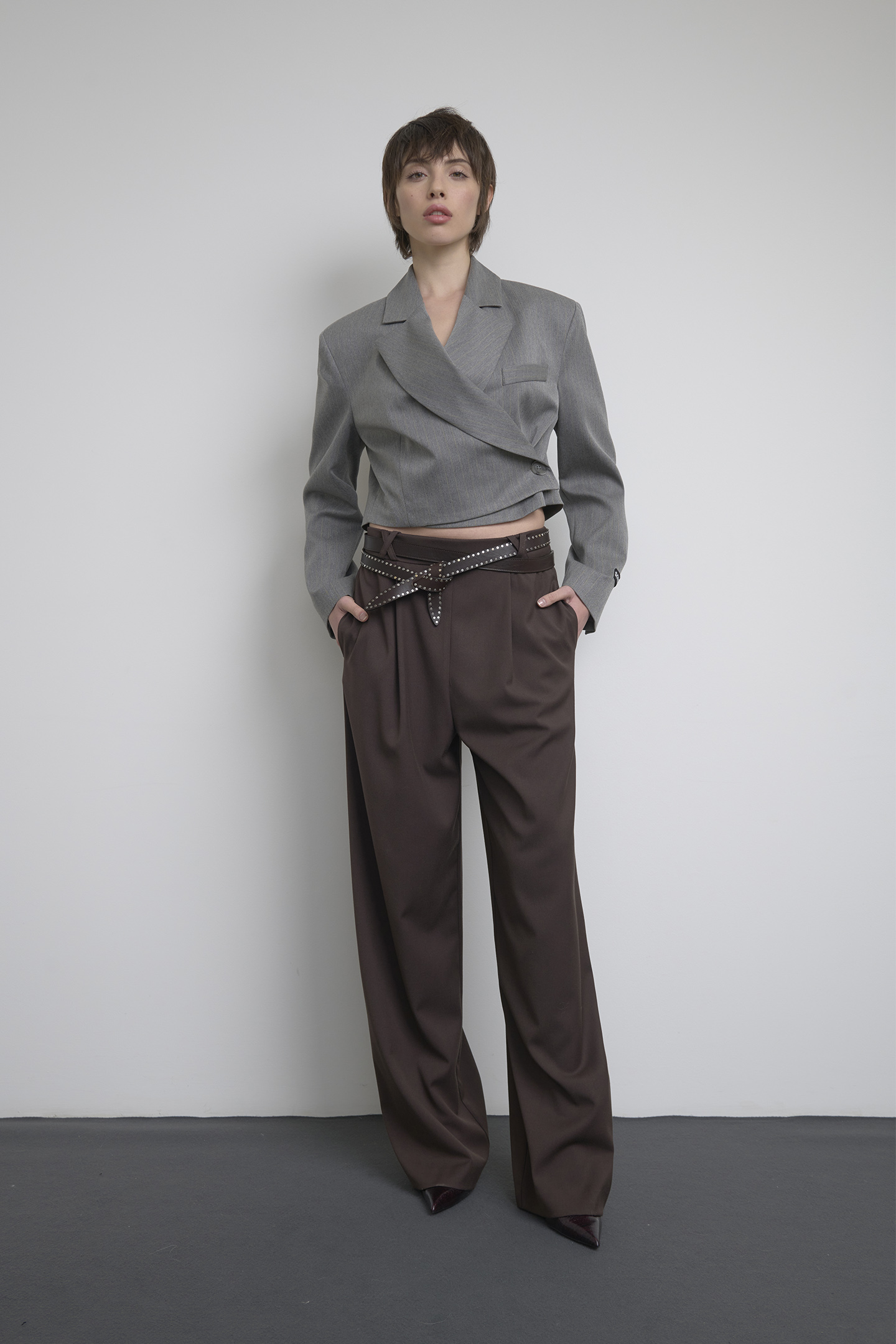 Giacca Crop Gessato Grigio