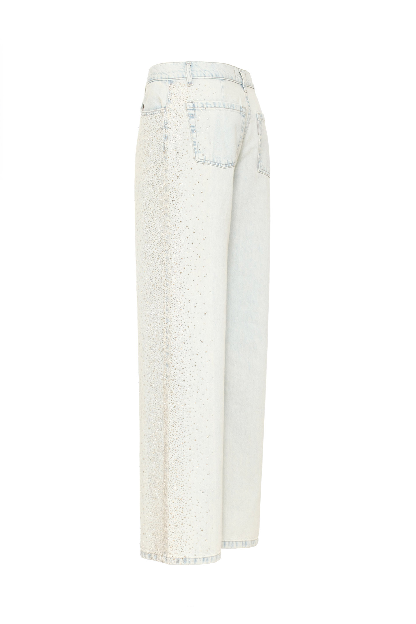 Jeans in 100% cotone dal lavaggio chiaro con micro cristalli ai lati.