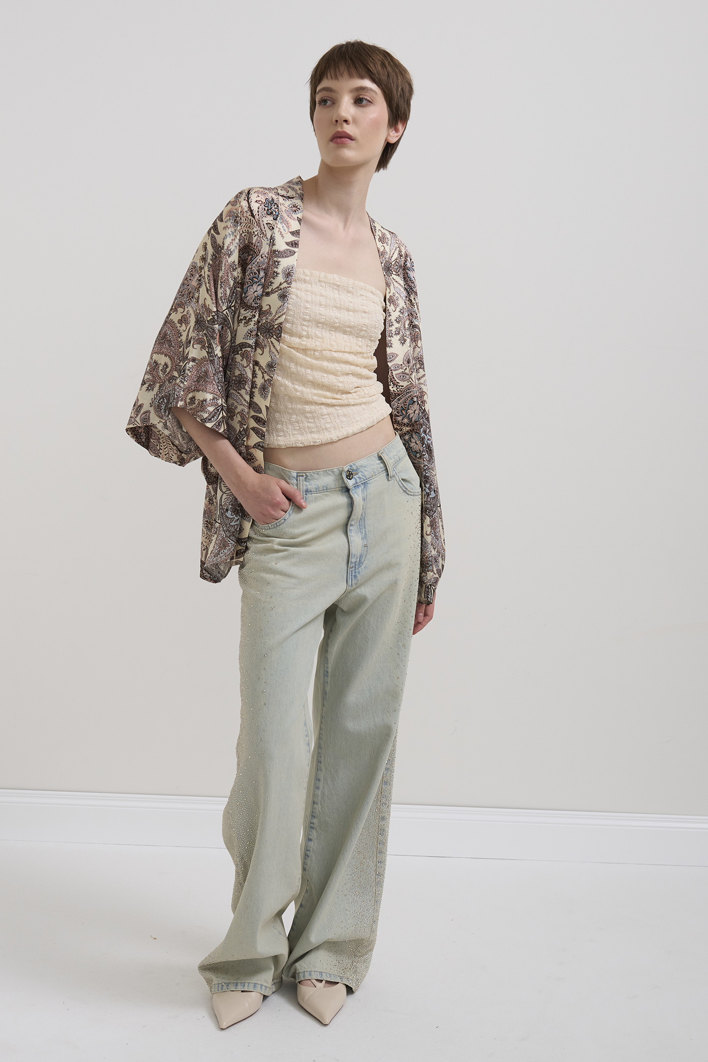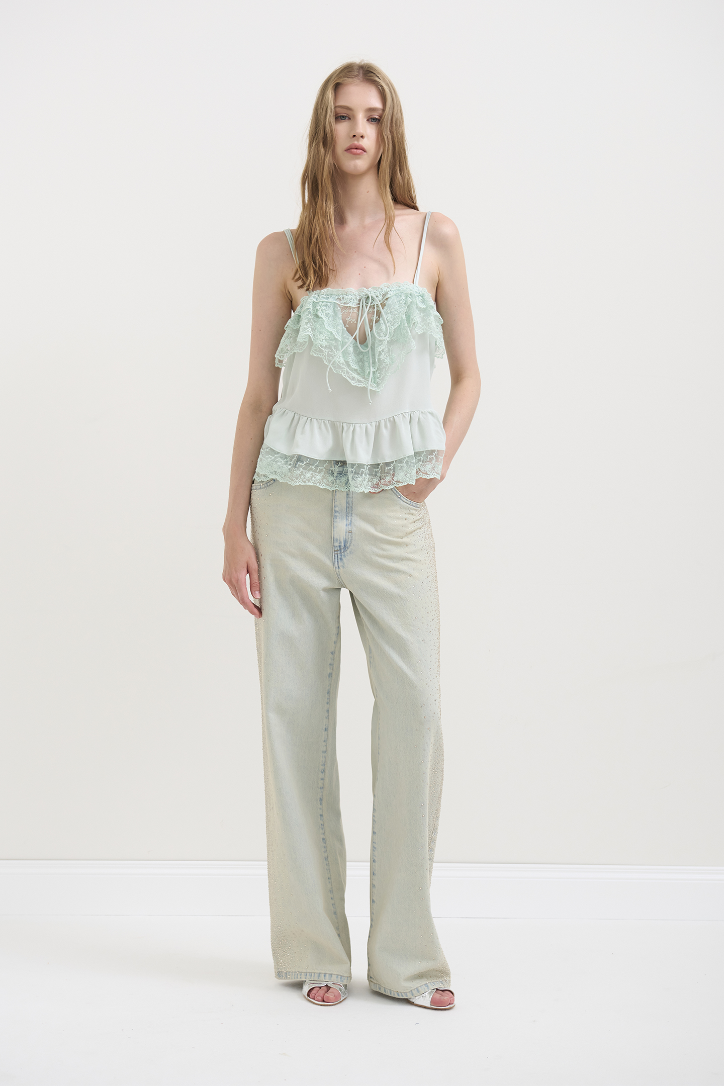 Jeans Dritti con Micro Cristalli