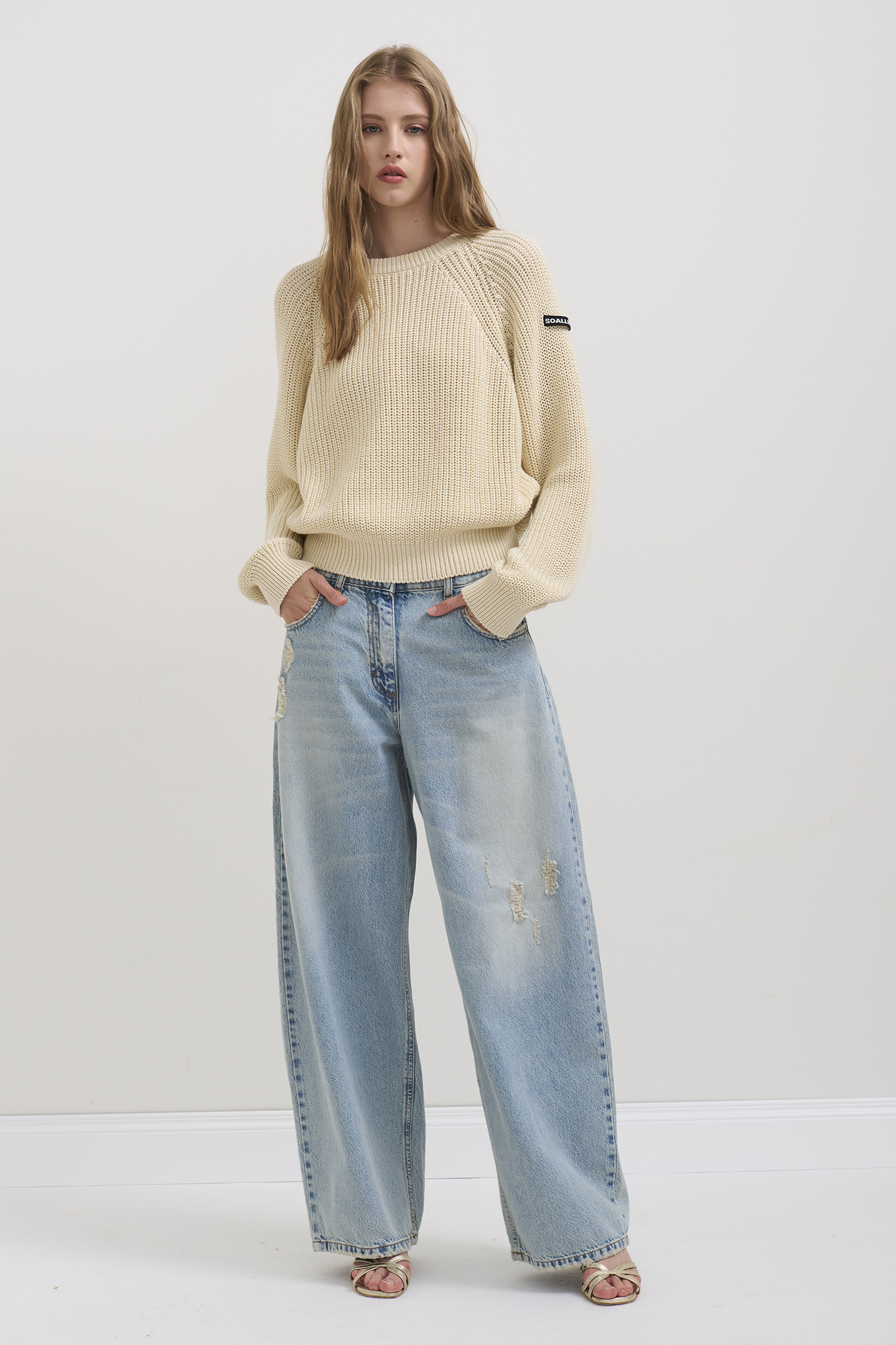 Modello cinque tasche a vita medio-bassa, ideale per look dalla silhouette rilassata.