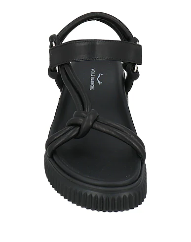 Sandali tecnici in pelle, tinta unita, brand logo, interno in pelle, chiusura con velcro, punta tonda, flatform, suola in gomma con incisioni, contiene parti non tessili di origine animale.