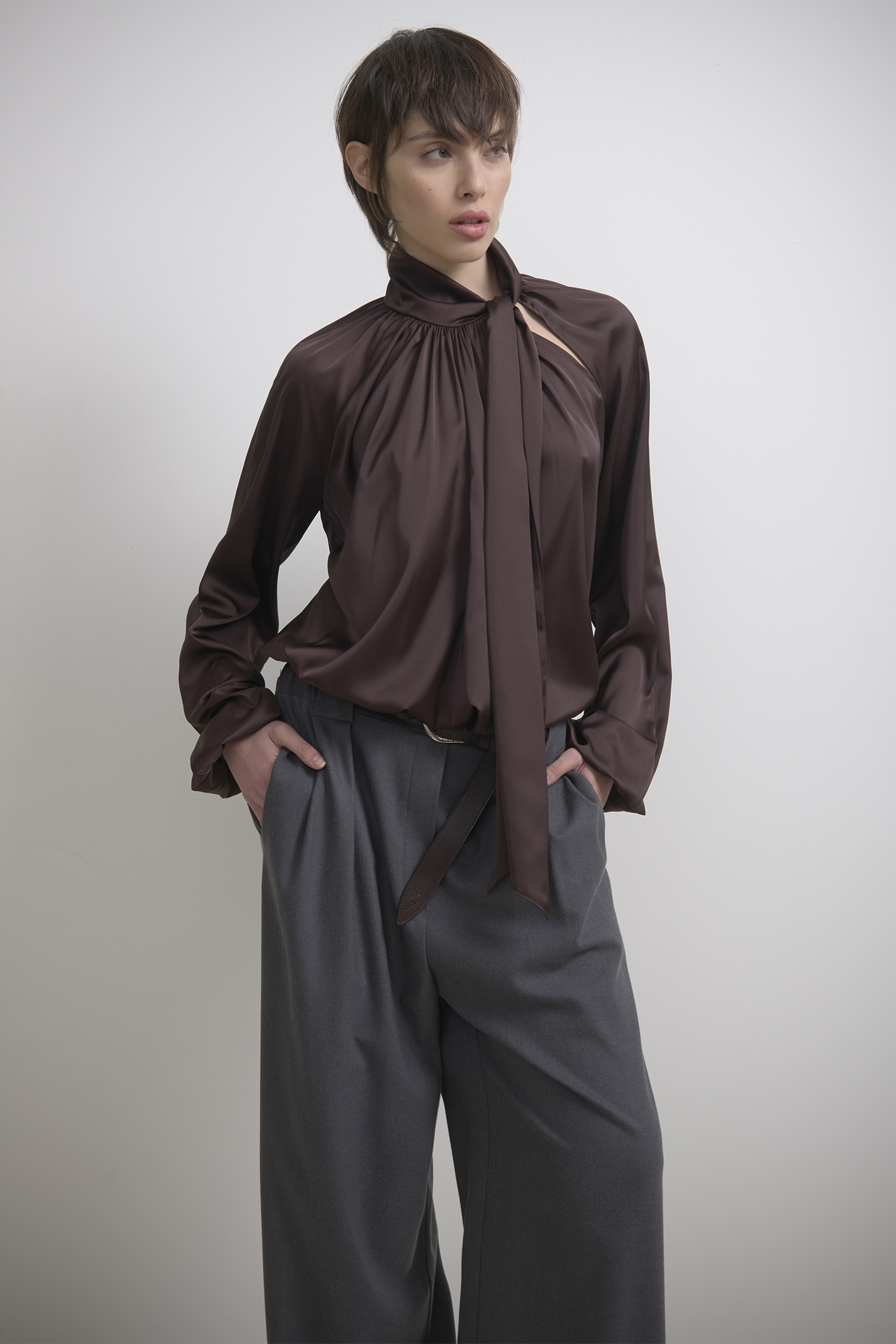 Le pinces sul davanti slanciano la figura, garantendo comfort e libertà di movimento.