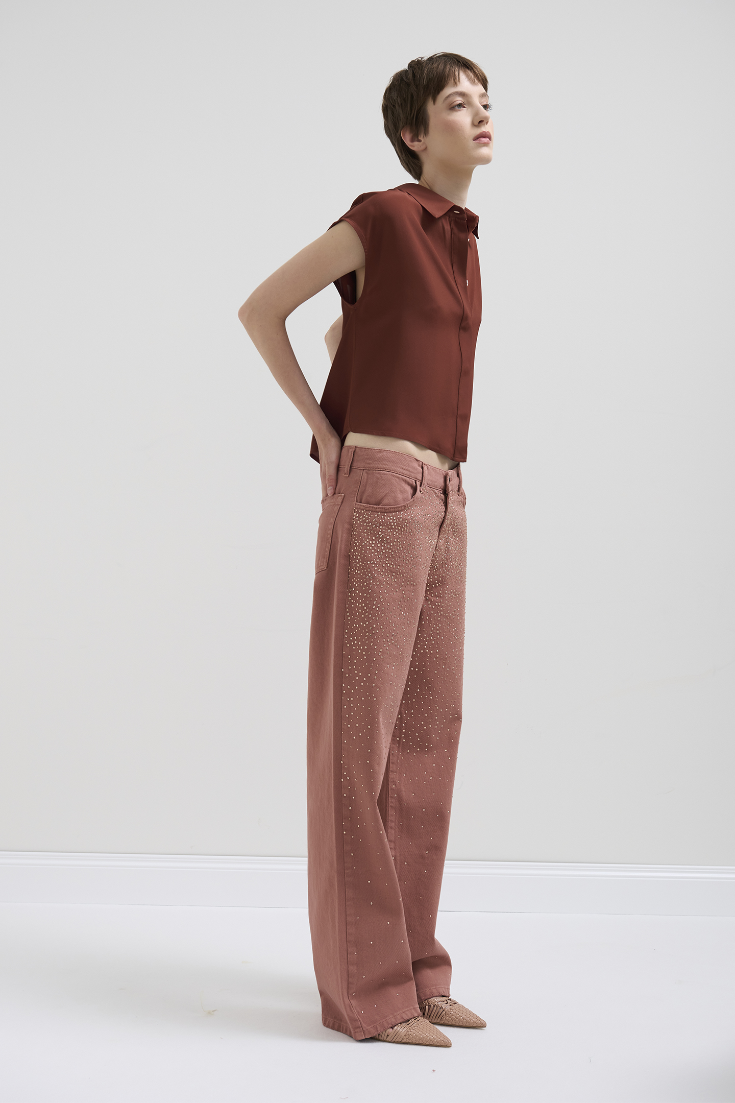 Modello a  gamba dritta e rilassata, ideali per outfit casual-chic da giorno.